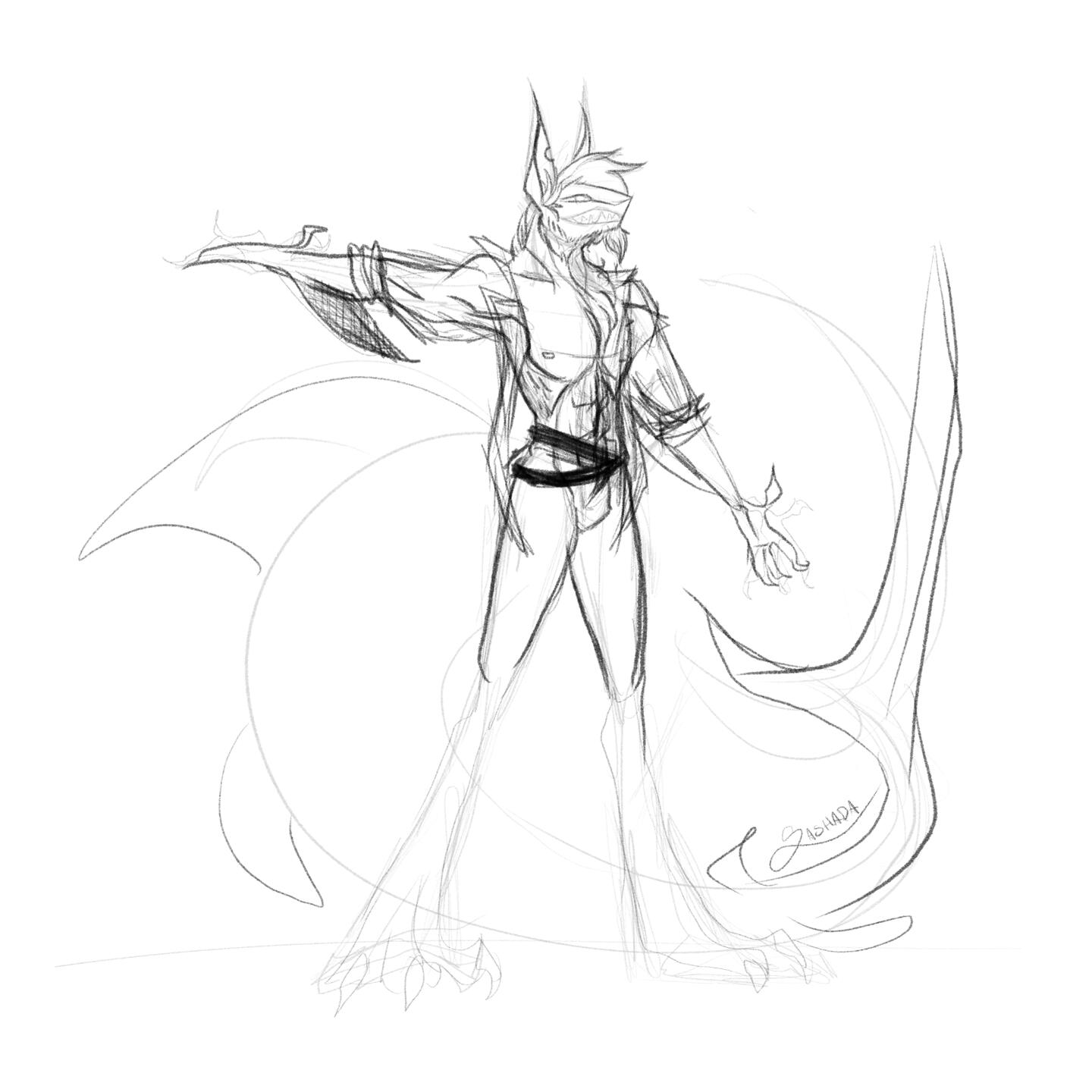 2.1. I will create a minimum of two preliminary sketches after the arrangements mentioned above, which determine the characters' positions and the situation they are in.